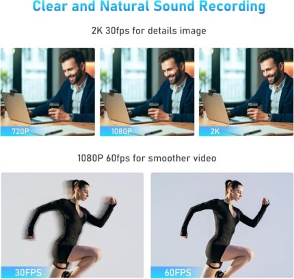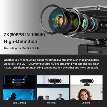 2K Webcam, FHD Computer Streaming Camera with 2K/30fps, 1080P/60fps, Autofocus, Dual Noise-Cancelling Microphones and Tripod, for Computer/Zoom/Skype/Teams/Laptop/MacBook/Windows