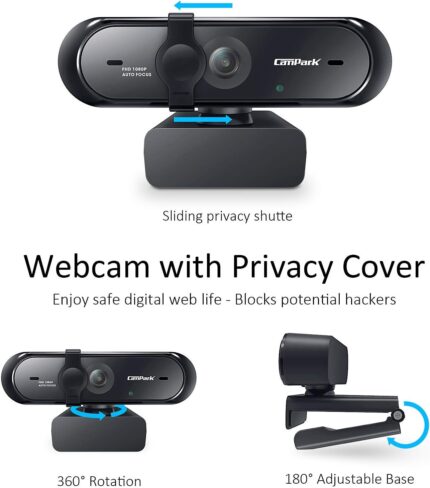 1080P Webcam, Full HD Webcam for PC, Web Camera with Autofocus, Privacy Cover, Computer USB Camera for Streaming, Conferencing