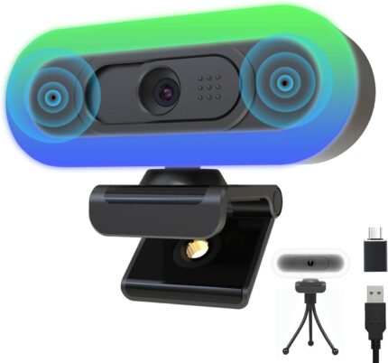 1080P 60FPS Streaming Webcam with Autofocus, Microphone, RGB Light and Tripod, USB Camera for PC/Mac, Plug and Play for Zoom, Skype, YouTube, Online Meetings