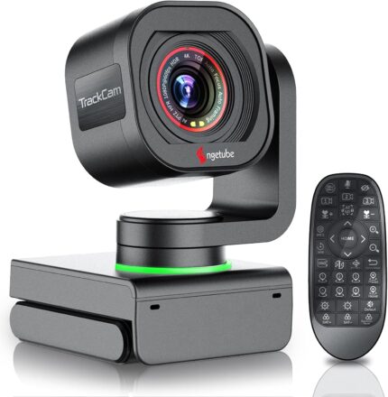 Angetube TrackCam 4K Webcam for PC/Mac – AI Tracking USB 3.0 Streaming Camera with Remote Control, Gesture Control, PTZ, HDR, Microphones, Web Camera for Desktop Computer, Laptop, Meeting, Video Call