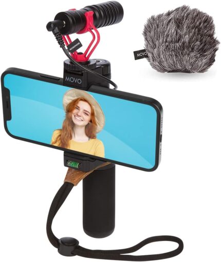 Movo Smartphone Vlogging Kit for iPhone with Shotgun Microphone, Grip Handle, Wrist Strap for iPhone and Android Smartphones for TIK Tok, Vlog, YouTube Starter Kit and Content Creator Kit