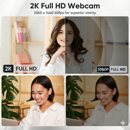 2K Webcam with Microphone, Noise Cancellation, Privacy Cover, Wide-Angle Lens, Auto Light Correction, Plug & Play USB Webcam for Laptop, Desktop, PC, Mac, Zoom, Skype, Streaming (Black)